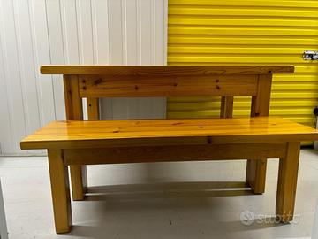 Vendo tavolo in legno massello completo di panca coordinata. Ideale per cucina, taverna, giardino o casa in montagna.