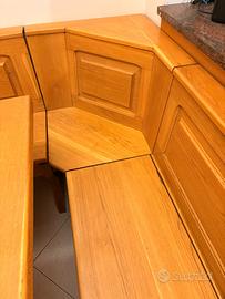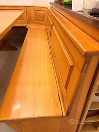 tavolo in legno 210 X 100 h78. panca angolare lato lungo 268 - panca lato corto 158. altezza panche a partire dalla parte più alta dello schienale 85 cm, dalla seduta 45 cm. le due panche sono contenitore.
