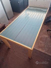 Vendo Tavolo con base in legno massello e cristallo temperato in ottime condizioni. Misure 200x90 h 75. Possibilità di consegna