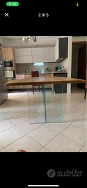 Vendo tavolo in legno massello con i piedi di vetro x mancanza di spazio 2 metri lungo