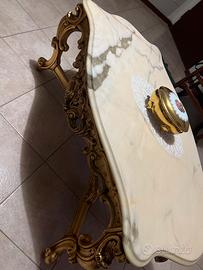 Elegante tavolo realizzato in legno massello con piano in marmo “rosa bellissimo”, lavorato artigianalmente.