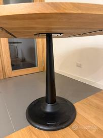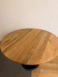 Elegante tavolo rotondo con piano in legno massello di mango e base centrale in metallo nero, solido e stabile. Design moderno/industriale, perfetto per cucina, sala da pranzo o zona living.