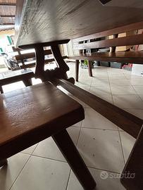Vendo bellissimo tavolo in legno massello con 3 sedie e 2 panchine abbinate 2,20m x 80 cm Per veri intenditori Anni 60/70 Prezzo in privato