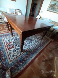 Bel tavolo in legno massello. Largo 100 cm, lungo 130 cm. Ha due prolunghe di serie da 60 cm/cad a scomparsa. Diventa lungo 250 cm. Alto 80 cm. Tenuto benissimo da quattro generazioni. Tavolo centenario.