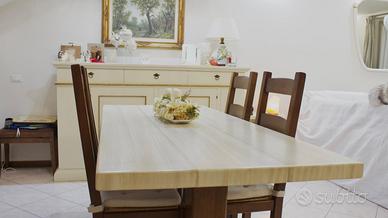 Vendo tavolo rettangolare in legno massello completamente ristrutturato con 4 sedie abbinate.