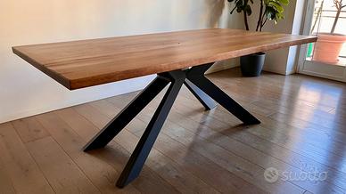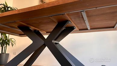 Come da titolo, vendo tavolo fisso con struttura in acciaio verniciato colore grigio antracite, piano in legno massello spessore 4 cm di rovere europeo. Lunghezza 200cm, larghezza 100cm, altezza 76cm.
