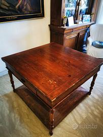 Salve, vendo tavolo in legno massello, stile arte povera, originale del secolo scorso, in buono stato generale. Legno vissuto ma struttura solidissima. Con pedana abbinata e due cassetti. Dimensioni 120x120 estensibile fino a 240. Ritiro a mano zona Roma - Vigna Murata