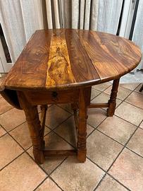 Dotato di bandelle laterali ribaltabili con gambe girevoli a cancello, si apre e si richiude facilmente, diventando da tavolo salvaspazio a comodo tavolo da pranzo.