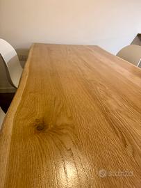 Tavolo in legno massello di rovere canadese. Pezzo unico, realizzato su commissione. Misure 185x85