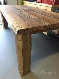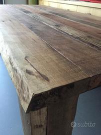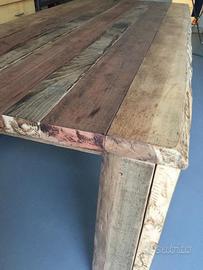 Vendo tavolo in legno massello pregiato , il legname ha una sessantina d’anni , e’ stato costruito interamente a mano , le diverse colorazioni sono la particolarità di questa lavorazione che ha impiegato piu tipi di legname ,dal tek al rovere e castagno ,le sue misure sono lunghezza cm 220 x larghezza cm 105 spessore cm 5 . Pou ospitare comodamente 8/10 persone