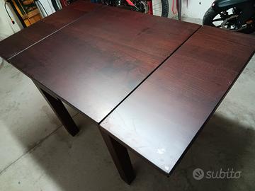 Meraviglioso tavolo in legno massello color mogano realizzato a mano da artigiano ebanista.Il Tavolo è tenuto molto bene e misura 80 cm x 80.Ha delle prolunghe laterali da 30 cm per lato che consentono un apertura totale di cm 140. È allestito anche di un cassetto a scomparsa. Oggetto ideale per camere studio .Pezzo originale difficile da reperire. Consegna solo a mano.