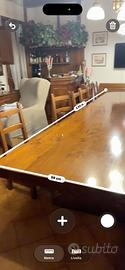 Vendo tavolo in legno massiccio come da foto 4m x 1m. Nessun difetto, tenuto sempre coperto da mollettone e tovaglia. Il tavolo e’ corredato da panca e 8 sedie come da foto. Per ulteriori informazioni scrivetemi.