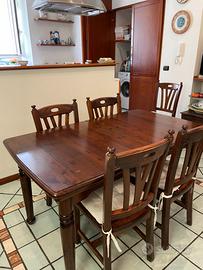 Vendo tavolo da pranzo in legno massello, con prolunga centrale apribile che consente di passare facilmente da 4 a 6/8 posti.