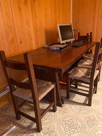 Tavolo in legno massiccio castagjo 2,00 x 1,00 + 6 sedie in castagno impagliate