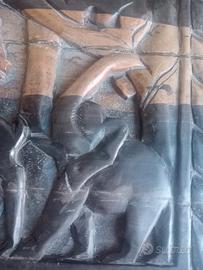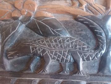 Tavolo in legno massiccio intagliato a mano – Motivi floreali e animali – Pezzo unico Vendo splendido tavolino artigianale in legno massiccio, pezzo unico, interamente intagliato a mano con dettagli ricchi e profondi: fiori, foglie e animali scolpiti con grande abilità. Un pezzo di arredamento di forte impatto visivo, ideale per salotti, ambienti etnici, rustici o come mobile decorativo. ✔ Caratteristiche principali Legno massiccio Intaglio artigianale su piano e gambe, con scene naturalistiche e motivi floreali Lavorazione di qualità, solido e pesante Piedi scolpiti e fascia laterale decorata Oggetto perfetto per chi ama pezzi unici e lavorazioni tradizionali 📏 Dimensioni Lunghezza: 122 cm Altezza: 50 cm Profondità: 50 cm 🧰 Condizioni In buono stato generale e strutturalmente stabile. Presenta normali segni del tempo: crepe del legno che non ne compromettono l’uso e pezzettino mancante in un angolo. Può essere valorizzato ulteriormente con un leggero restauro o una semplice lucidatura. 🎯 Perfetto per Salotto o soggiorno Case in stile etnico, boho, rustico o coloniale Amanti dell’artigianato e dei mobili scolpiti Collezionisti di oggetti intagliati