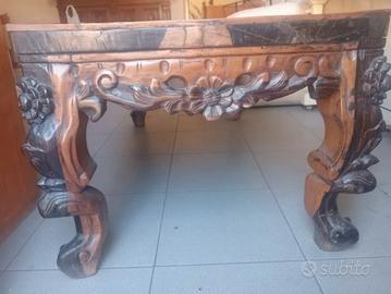Tavolo in legno massiccio intagliato a mano