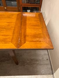 Tavolo in legno massello allungabile Qualche segno di usura comeda foto ma nel complesso in ottime condizioni Misure da chiuso: 160cm x 85cm Prolunge da 40cm Massima estensione 240cm Altezza 79cm Ritiro a mano a Bernareggio (MB)