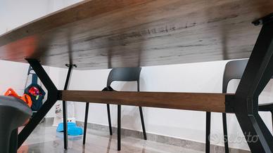 Vendo in perfette condizioni, tavolo rettangolare sagomato in legno massello, color noce antico e con base metallica di colore nero. Misura larghezza 90cm (nella parte più stretta) e 1m (nella parte più larga); lunghezza 2m.