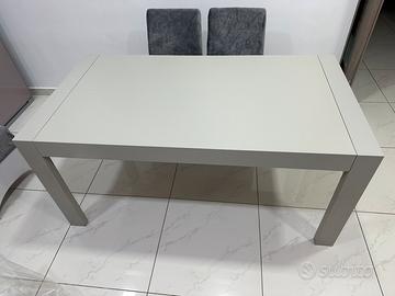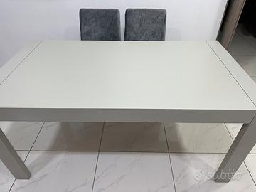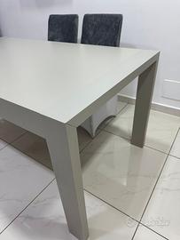 Tavolo in legno color grigio chiaro apribile in entrambi i lati fino a 240. Sedie in regalo