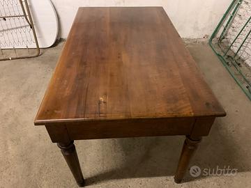 Vendo tavolo in legno noce massiccio con gambe tornite, cm 84x148, inizi primi ‘900.