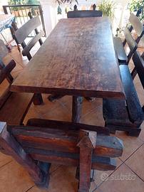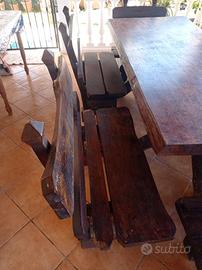 vendo tavolo in legno di castagno con sei panche grandi e due più piccole, misura cm 85x205