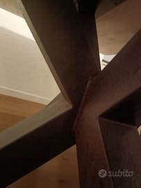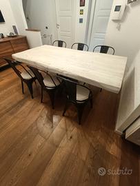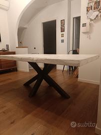 tavolo da pranzo con piano in legno massello alto 7 cm , spazzolato bianco, gamba in ferro a stella corten, cambio per distribuzione diversa della cucina , misure 200 cm lunghezza 100 110 cm larghezza e altezza 77 cm , lavorazione XLAB DESIGN
