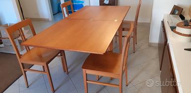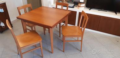 Tavolo in legno color ciliegio 90x90 con 4 sedie allungabile con ribaltamento a libro 180x90 - ottime condizioni - ritiro a domicilio