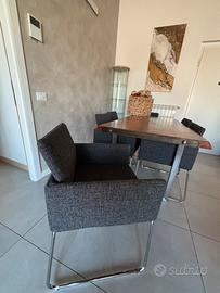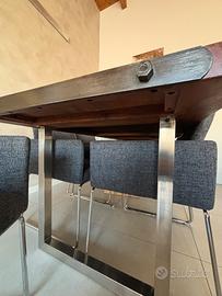 Tavolo in legno con appoggi in acciaio 6 poltroncine grigie incluse