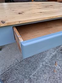 tavolo in legno restaurato pronto all utilizzo per qualsiasi tipo di arredamento locale sala cucina bar pub trattoria ristorante. dimensione 128x72 h 80. con cassetto. ritiro a mano disponibili altri tavoli