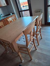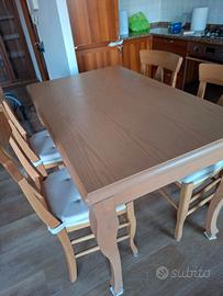 Vendo come da titolo Tavolo in legno color rovere estendibile, comprensivo di 4 sedie. Misure: Standard 130cm x 80cm Esteso 177cm x 80cm