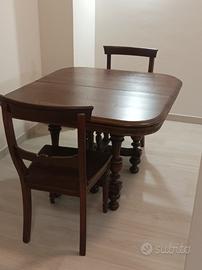 Tavolo da salotto/pranzo in legno rovere (modello “Luigi quattordicesimo”), allungabile, composto da 4 sedie. Completamente restaurato.