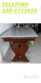 vendo tavolo con struttura in legno con base in granito lavorato artigianalmente con angoli e spigoli arrotondati,