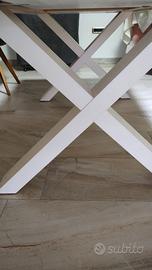 Bianco decapato Cm 180 che aperto diventa 280 cm Piedi incrociati Legno pieno