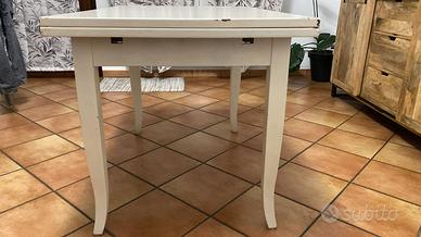 Il tavolo è stato verniciato di bianco per adattarlo al nuovo colore della cucina