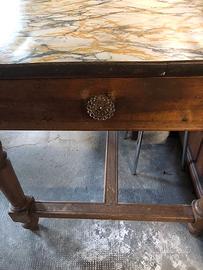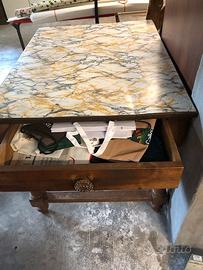 Tavolo da pranzo realizzato a mano in legno massello. Misure: 108 x 82 x 80 di altezza. La particolarità sta nel cassetto che ha la stessa profondità del tavolo, per cui comodissimo per ordinare attrezzi da cucina.
