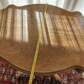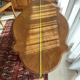 tavolo in legno, misure piano 105x66 centimetri, altezza 77 cm. pezzo vintage con normali segni del tempo, ma solido. il piano e la struttura portante sono n legno massello, la decorazione sotto il piano è in legno massello impiallacciato. prezzo negoziabile. il supporto è rimovibile per agevolare il trasporto.