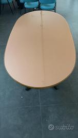 Tavolo ovale anni ‘70 in legno di qualità, con vetro sul piano d’appoggio color cipria. Larghezza 95 cm Lunghezza 190 cm Altezza 80 cm