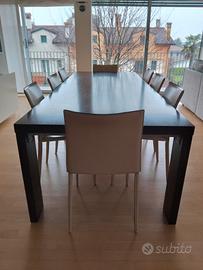 Vendo tavolo da sala di legno effetto wenge + otto sedie in pelle bianche.