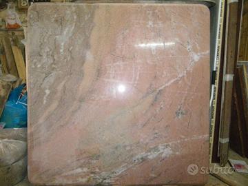 eccezionale tavolo in marmo rosa portogallo con piedi bianco e verdi, fatto da artigiano locale, unico pezzo, 1x1 mt perfetto in tutto!