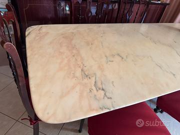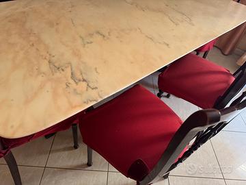 Tavolo in marmo con base legno e 6 sedie