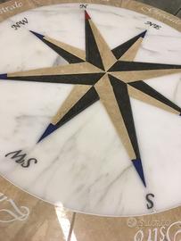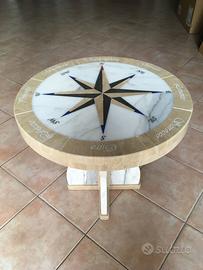 Splendido tavolino da caffe' in marmo lucido, con intarsio della rosa dei venti realizzato in:
