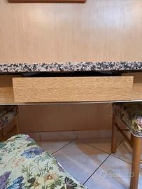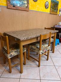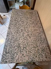 Vendo splendido tavolo rettangolare in legno massello con piano in marmo effetto granito, robusto e di alta qualità.
