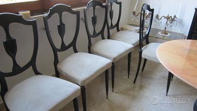 Tavolo ovale in marmo rosa lung. 1.92 largo 94, alto 80. N. 8 seggiole con tappezzeria in velluto grigio. Tavolino da salotto. Vendesi anche a pezzi separati. Non spedisco ritiro a Jesi (an) Prezzo da concordare.