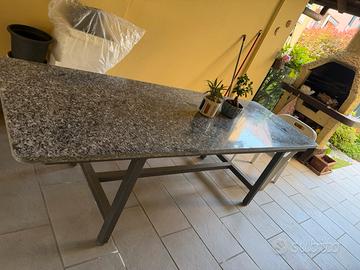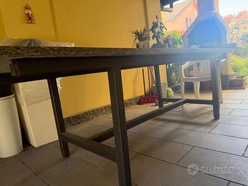 Tavolo in marmo Serizzo da esterno con struttura in ferro color grigio micaceo. Misure 85 per 250 Euro 500