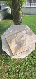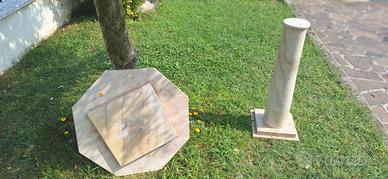 Tavolo in marmo composto da 3 pezzi ad incastro, ideale per giardini o per arredo rustico di interni H 83cm L piano ottagonale 65cm