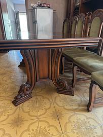 Vendo elegante tavolo da pranzo in legno massello, stile classico, completo di 6 sedie coordinate.
