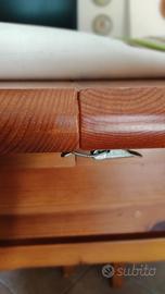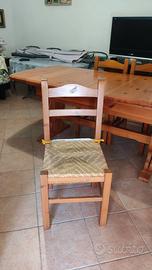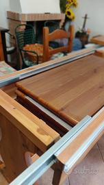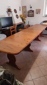 Tavolo in masssello di pino russo con dimensioni chiuso 90x190 e aperto con 4 allunghe riposte allinterno del tavolo dimensione 90x 370, compreso 6 sedie come da foto. Ritiro a carico dell'acquirente sul posto. Zona San Donatop Val Comino vicino Sora (FR).