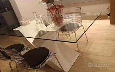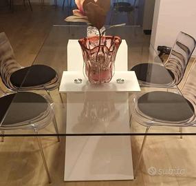 Tavolo rettangolare con base in Metallo e piano in Cristallo Mona