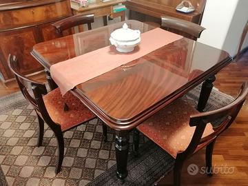 Regalo tavolo stile inglese apribile in mogano cm 120 x 120 oltre quattro sedie imbottite, come da foto.