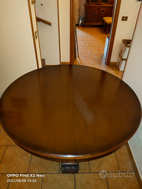 Vendesi tavolo in noce rotondo allungabile con prolunga tavolo che si ripiega e rimane dentro al tavolo.